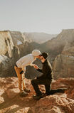 Canyon Overlook is easily the most coveted shoot location in Zion. It is a 1.25 mile round trip hike with some elevation gain and rocky terrain. This location features big Zion views and a beautiful hike. Great for adventurous families and couples. The majority of the year we only do this location for sunrise because of how popular and crowded it is with very limited parking.